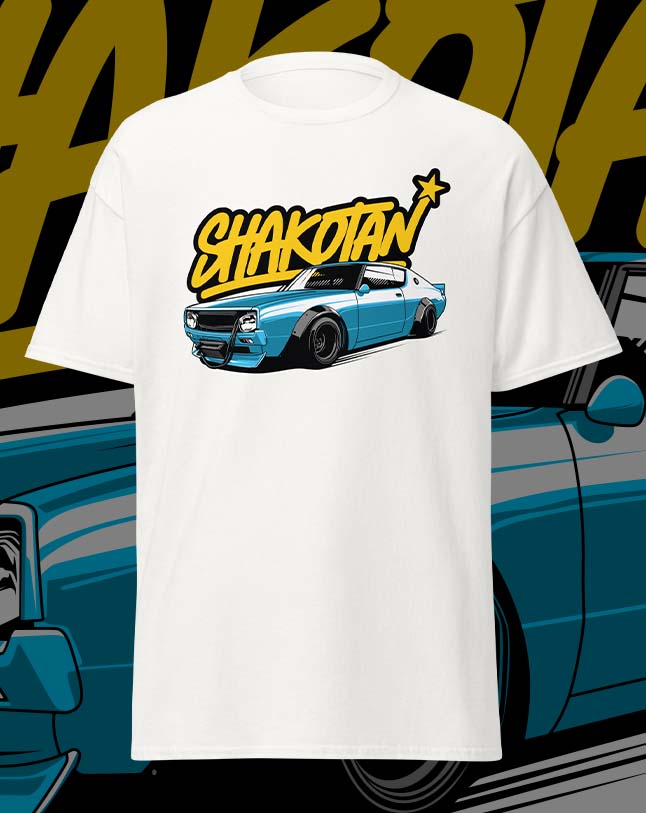The Shakotan Star Tee is a bold shoutout to Japan’s slammed car culture. With its aggressive stance, stretched fitment, and unmistakable retro silhouette, this shirt brings the spirit of Shakotan style to your everyday wardrobe. The oversized front print features a clean classic coupe dropped to the floor, paired with bold “Shakotan” lettering and a star to match the vibe.