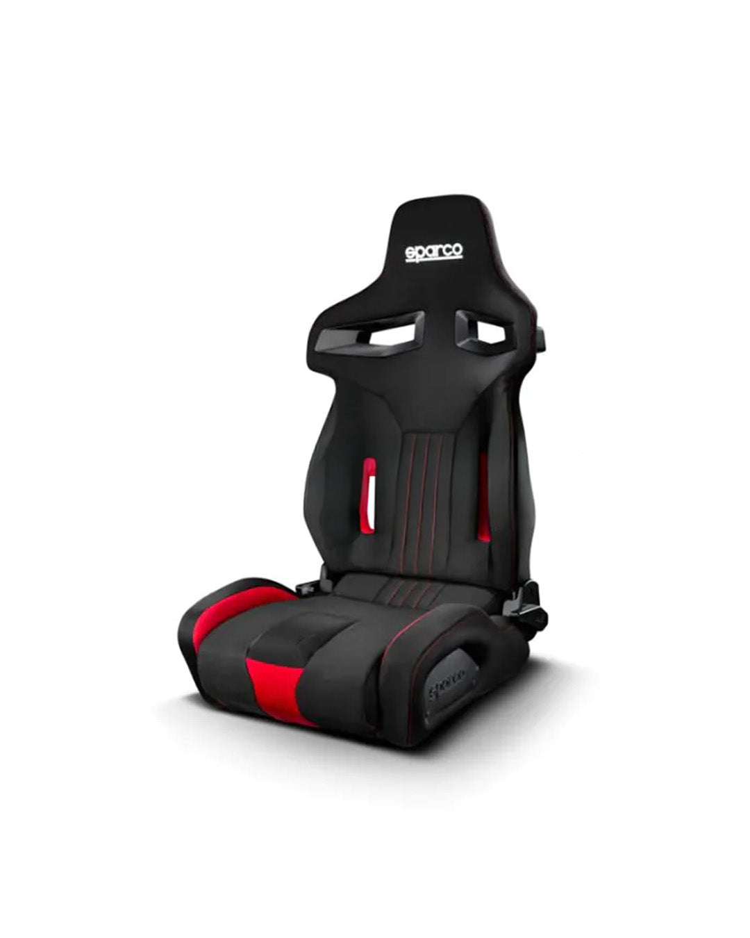 The Sparco R333 in Red Cross Stitching is a fully adjustable reclining seat that combines aggressive aesthetics with ergonomic comfort. Its black and red fabric design with vivid red cross stitching adds a striking look to any interior, while ensuring driving performance and support.